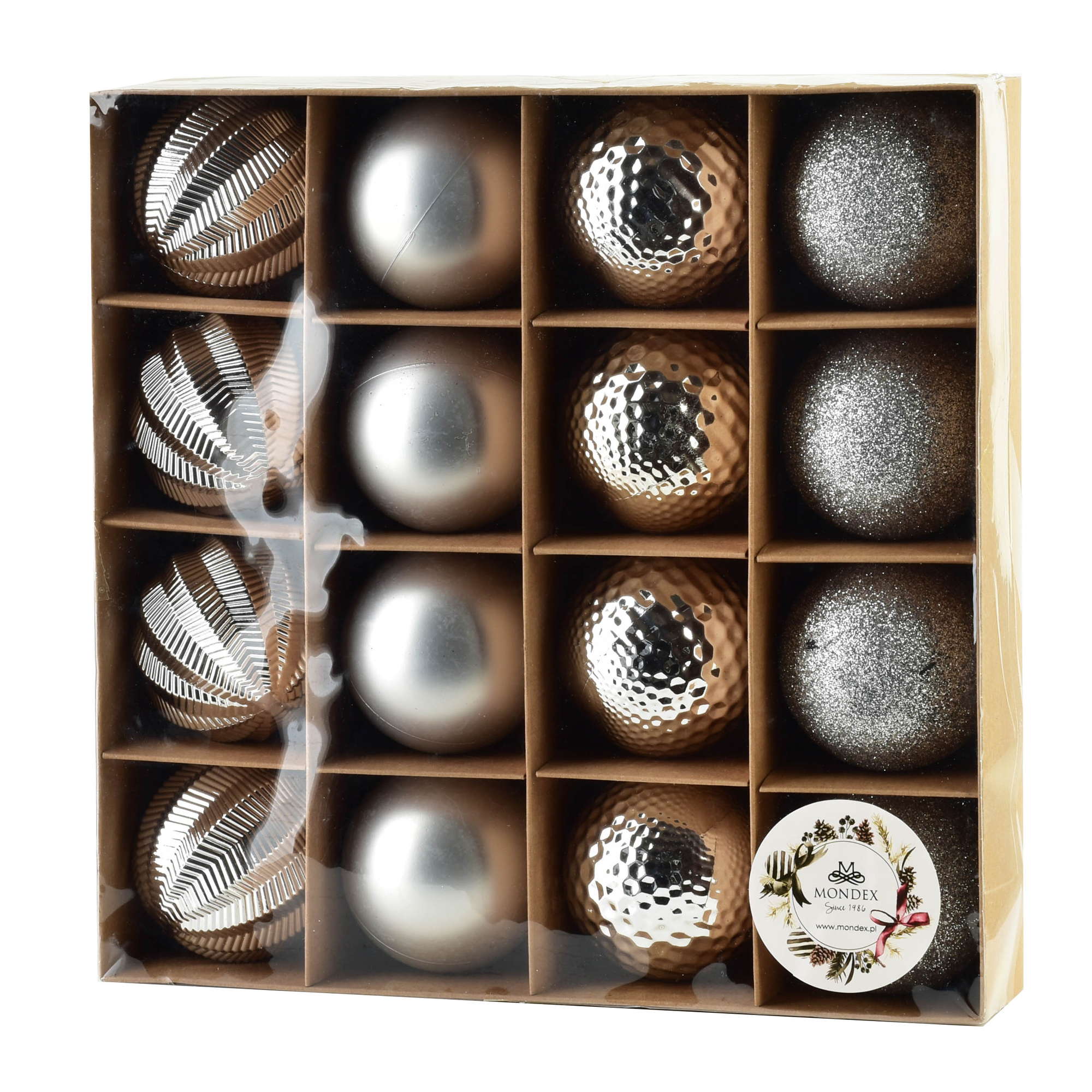 SANTA LILA Komplet 16 bombek srebrnych