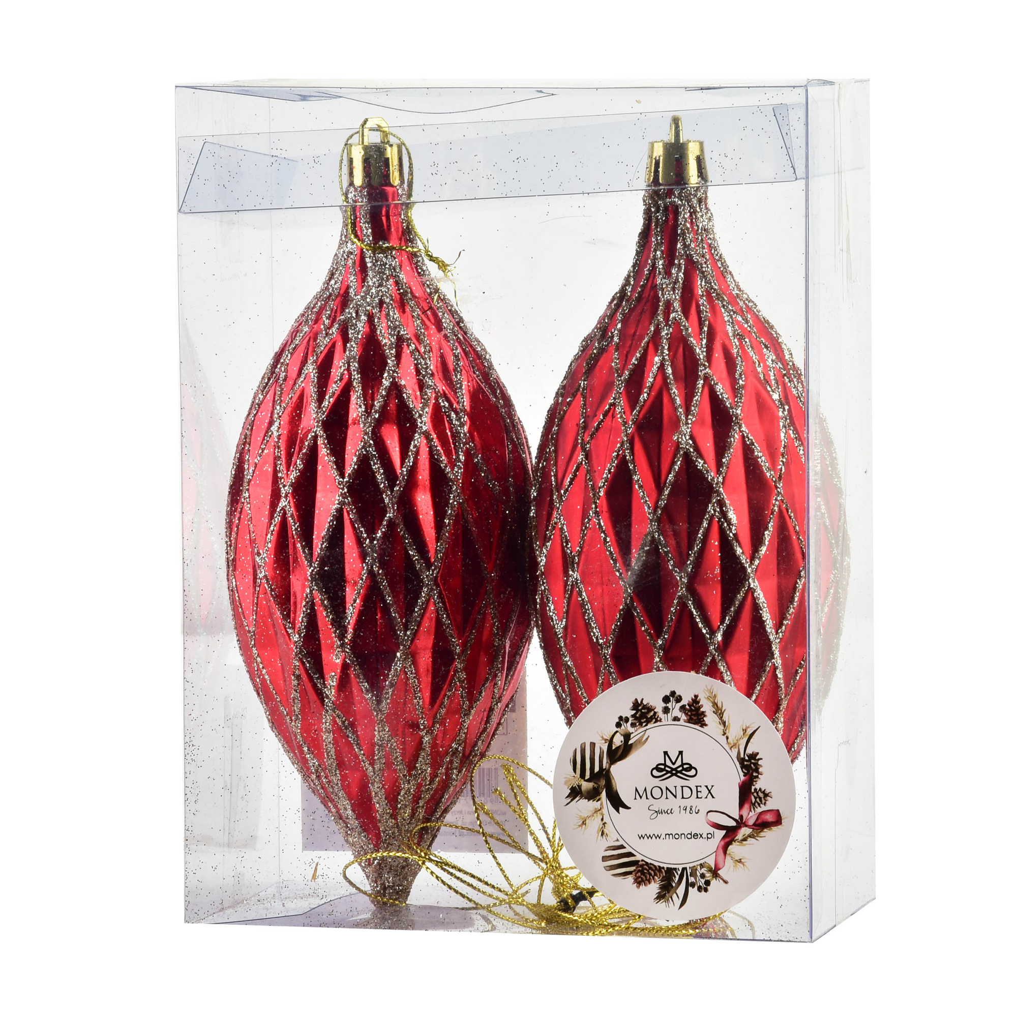 SANTA LILA . Komplet 2 bombek w kolorze czerwonymKlasyka i trwałość w świątecznym styluWprowadź do swojego wnętrza blask i elegancję z pomocą bombek SANTA LILA. Zestaw zawiera 2 efektowne bombki wykonane z trwałego tworzywa sztucznego, w pięknym złotym kolorze, który idealnie wpisuje się w...