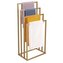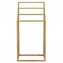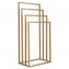 Elegantní stojan na ručníky se čtyřmi rameny pro pohodlné zavěšení a sušení vlhkých ručníků. Stabilní základna se čtyřmi protiskluzovými podložkami zajišťuje bezpečné použití. Široký kovový rám ve zlaté barvě působí stylově v každé koupelně. Praktický věšák na ručníky slouží i jako sušák na prádlo nebo držák na koupelnové doplňky. Funkční doplněk interiéru pro každodenní použití.