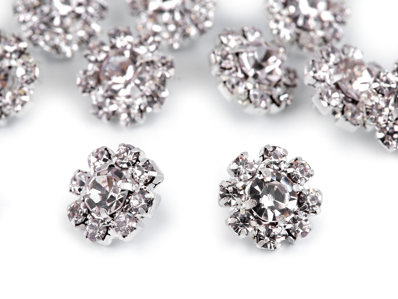 Luxusní knoflík zdobí broušené kamínky. Tvarem připomíná květ. Knoflík má spodní přišívání.Perfektně ozdobí společenské halenky, večerní či svatební šaty, bolerka a saka.Velikost knoflíků naleznete v této tabulce. przeczytaj całość