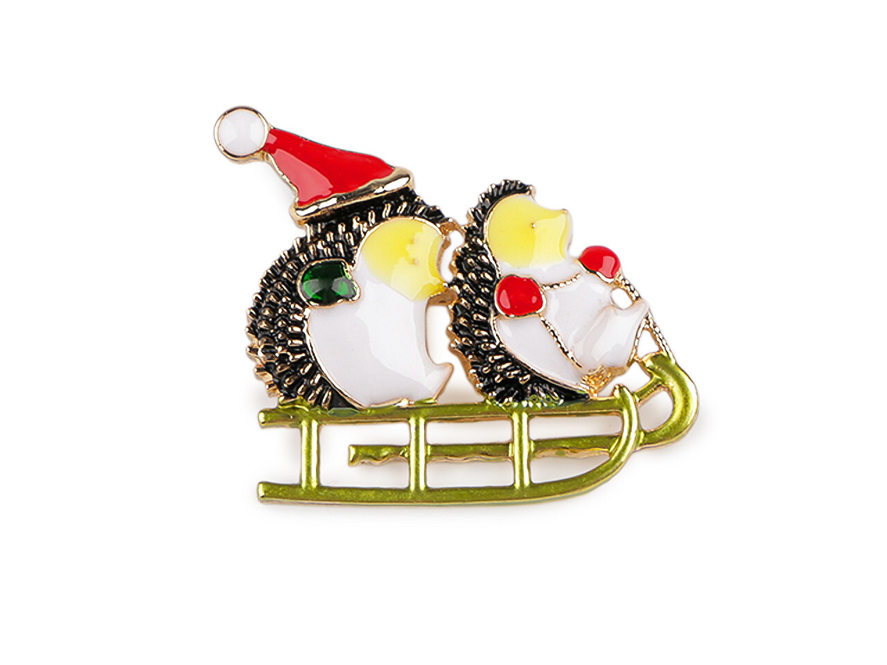 Vánoční brož ježci na saních, kočka - 1 ks - 1 bílá ježek