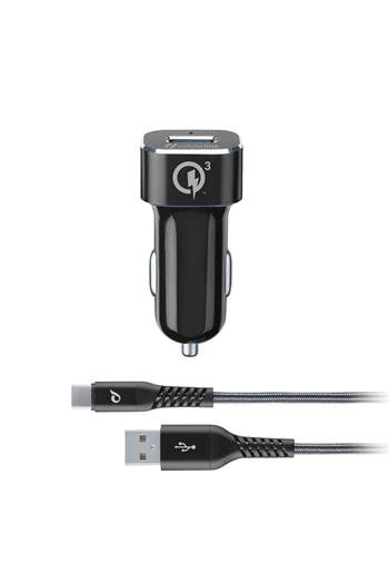 Cellularline Set USB autonabíječky a odolného USB-C kabelu Tetra Force 18W, Qualcomm Quick Charge 3.0, černá