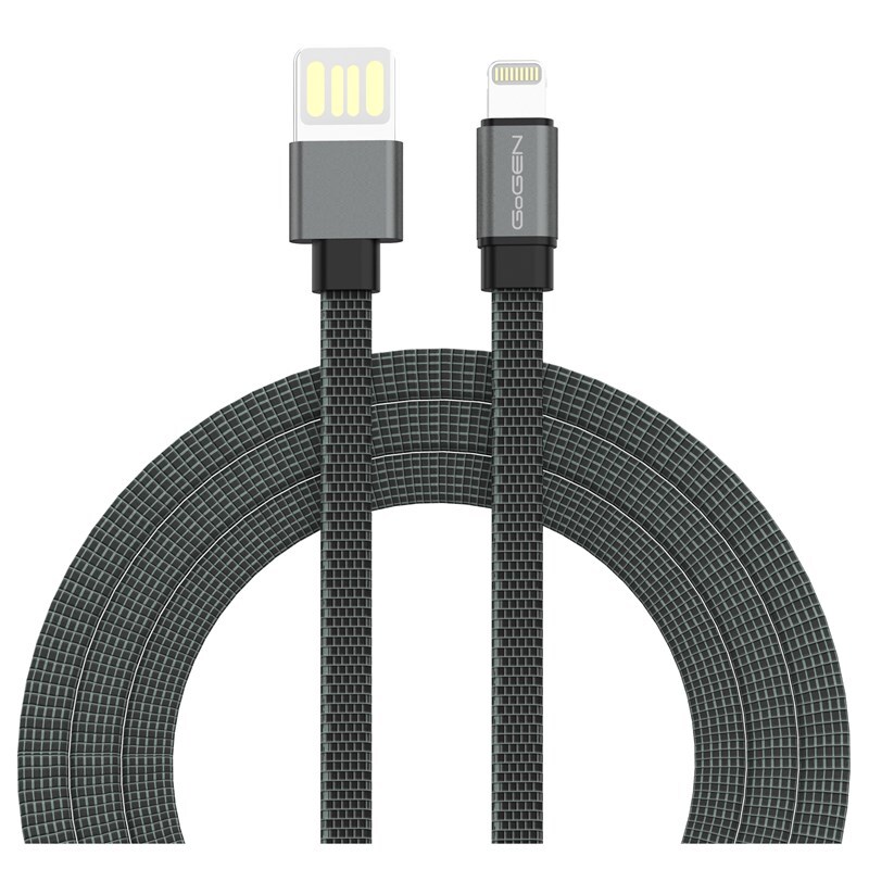 GoGEN USB-A Lightning, 1m, oboustranný, plochý, šedý kabel