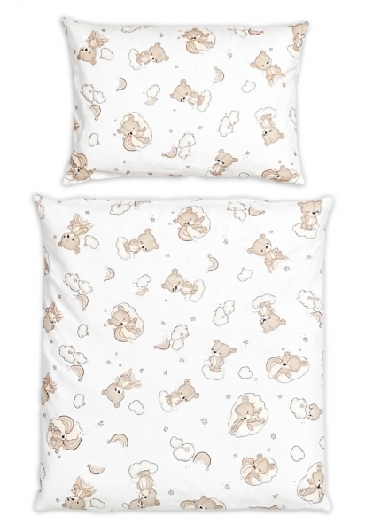 Povlečení do postýlky, bavlna, 2D sada, Malý Medvídek - bílá s potiskem; 120x90