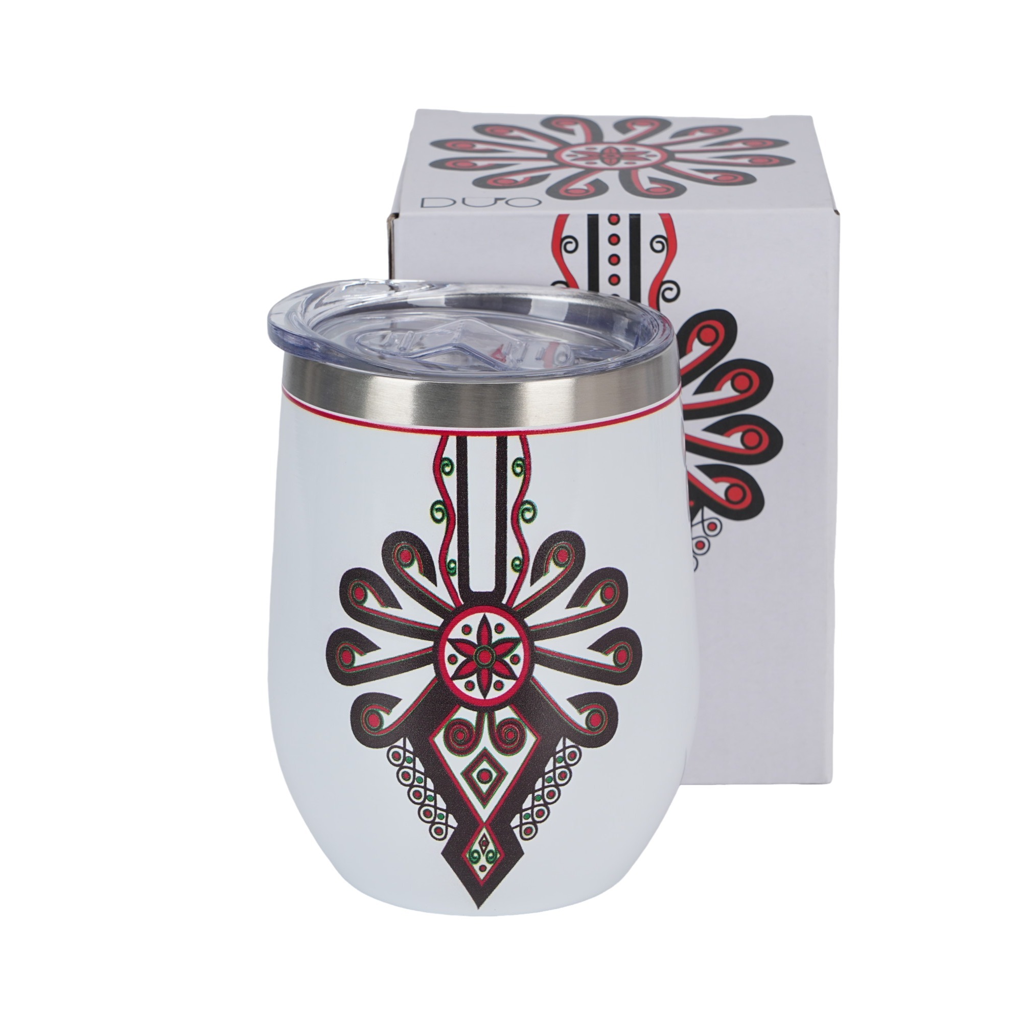 Kubek termiczny PARZENICA wchodzący w skład serii ETNO, wykonany ze stali nierdzewnej 18/8, doskonały do zimnych i ciepłych napojów zabieranych do pracy, szkoły czy na podróż.Linia zdobiona typowo regionalnym motywem podhala - haftu parzenicy w intensywnym kolorze czarno-czerwonym idealnie...