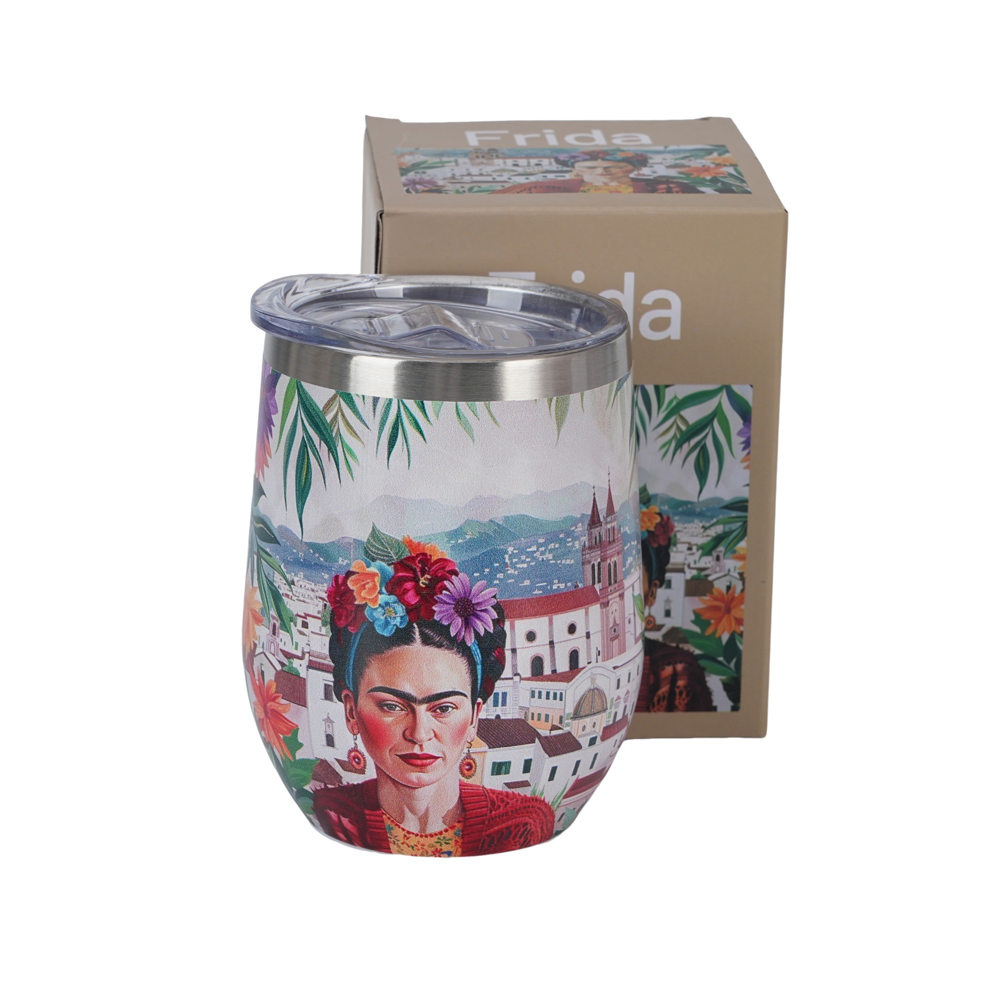Kubek termiczny MEXICAN ART wchodzący w skład serii Art Gallery, wykonany ze stali nierdzewnej 18/8, doskonały do zimnych i ciepłych napojów zabieranych do pracy, szkoły czy na podróż.Linia zdobiona interpretacją autoportretu ikonicznej meksykańskiej artystki. Soczyście kolorowe kwiaty we włosach...