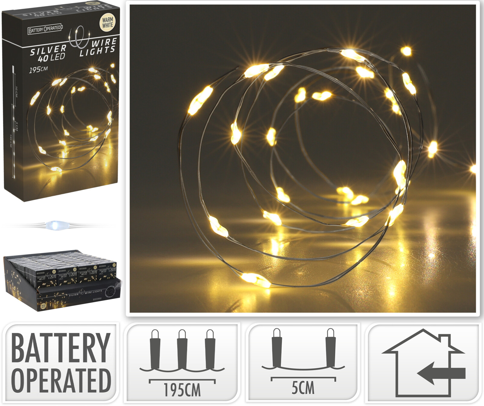ŁAŃCUCH LED 40L CIEPŁA BIEL WEWNĘTRZNE 195CM NA BATERIE