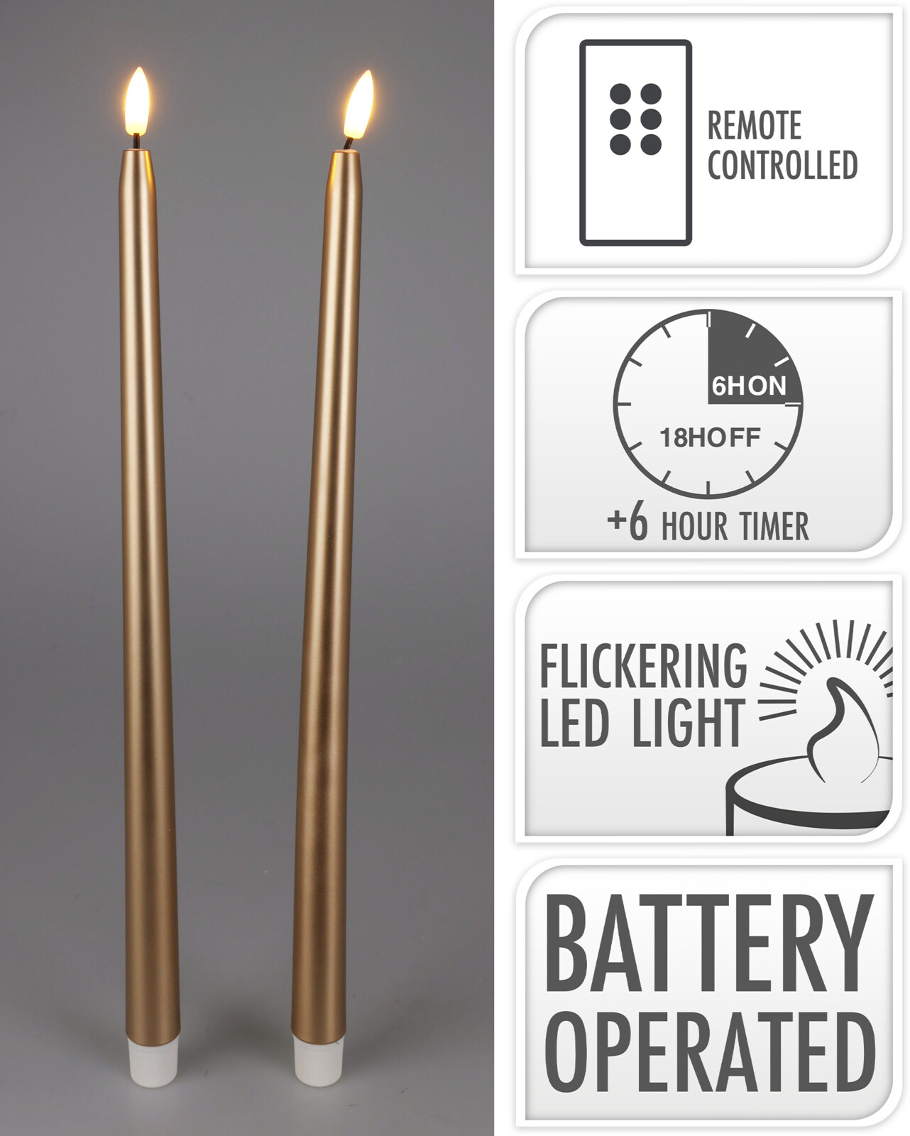KOMPLET 2 ŚWIEC LED 38CM ZŁOTA