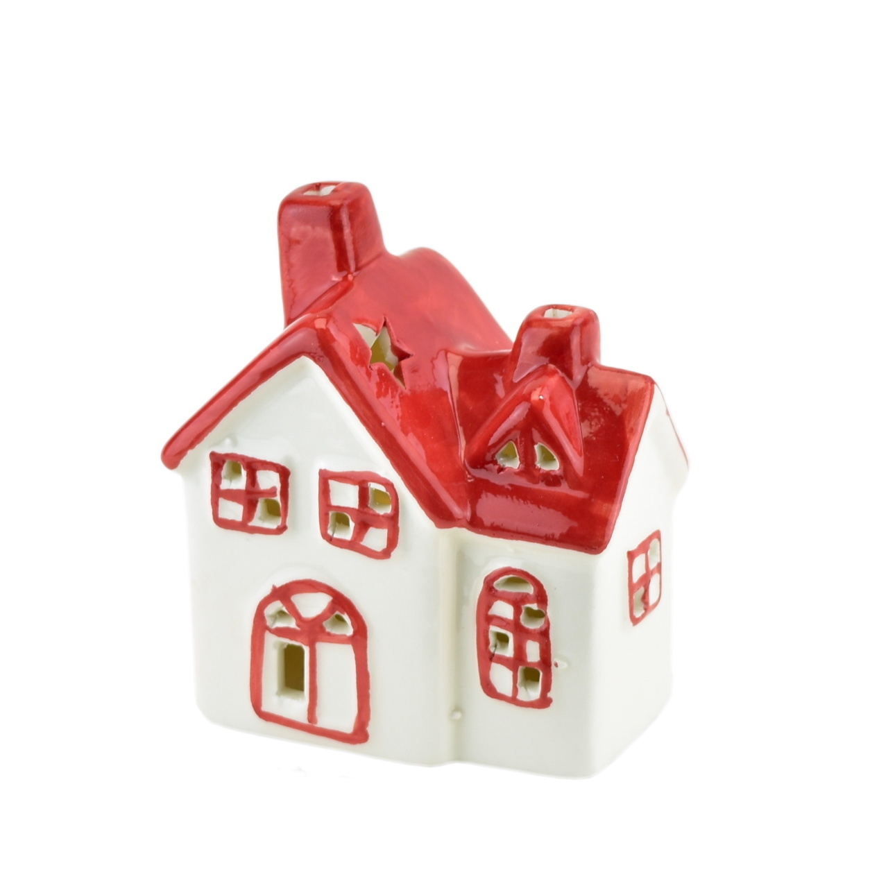 Líbezný keramický domeček s červenou střechou je ideálním doplňkem pro váš vánoční interiér. Své okny a hvězdičkami na střeše září díky LED osvětlení, které vytváří útulnou atmosféru. Stačí vložit baterie, které jsou součástí balení, a váš domeček bude ihned zářit. Tento výrobek je vyroben z...