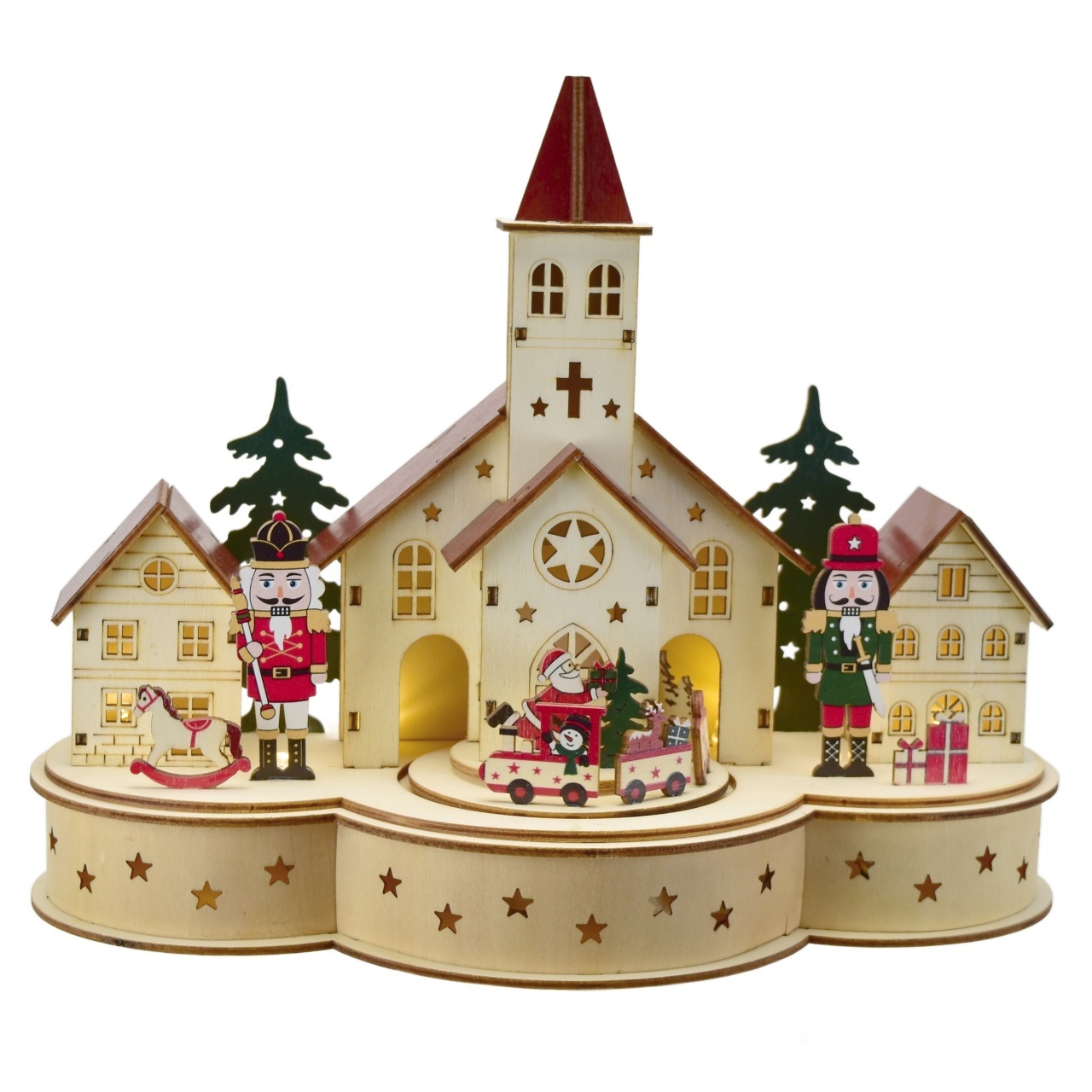 Objevte kouzlo Vánoc s naší dřevěnou vesničkou o rozměrech 21x30 cm! Tato okouzlující dekorace vyrobena z kvalitního dřeva přináší do vašeho domova jedinečnou atmosféru. Vesnička je vybavena LED diodami, které osvětlí každý detail.Hlavním lákadlem je malebný kostel, kolem kterého se točí vlak,...