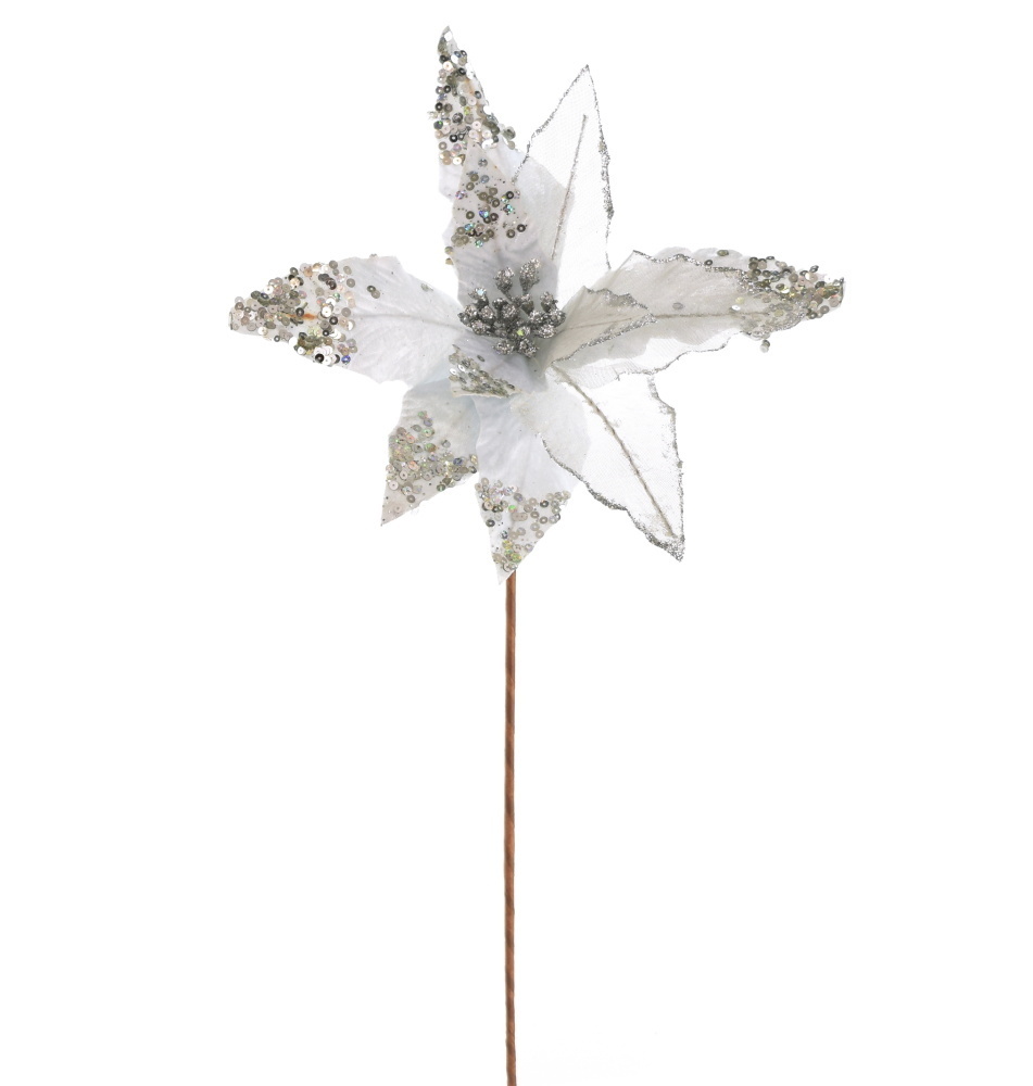 Poinsetia třpytivá dlouhý zápich, b.stříbrná. Vhodné i jako dekorace na stromeček. przeczytaj całość