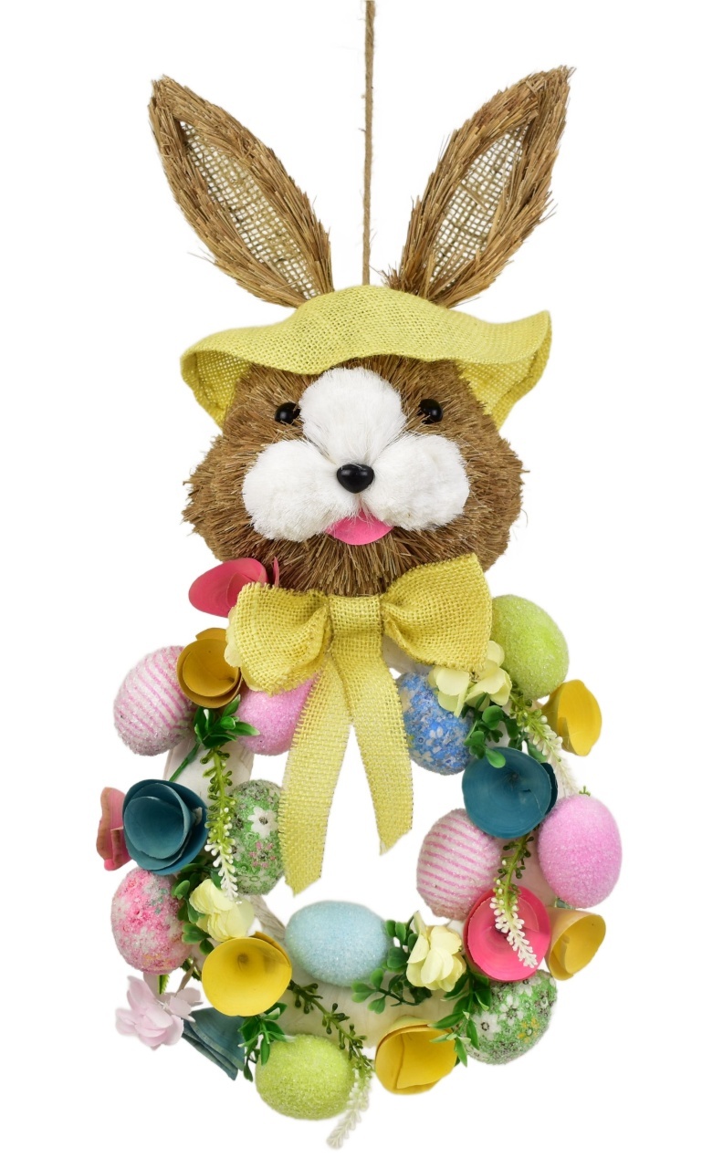 Věnec se zajícem a vajíčky žlutý 57x25 cm