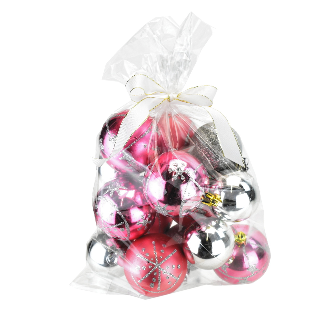 Vánoční koule v sáčku, assort, růžové / stříbrné, 14 ks