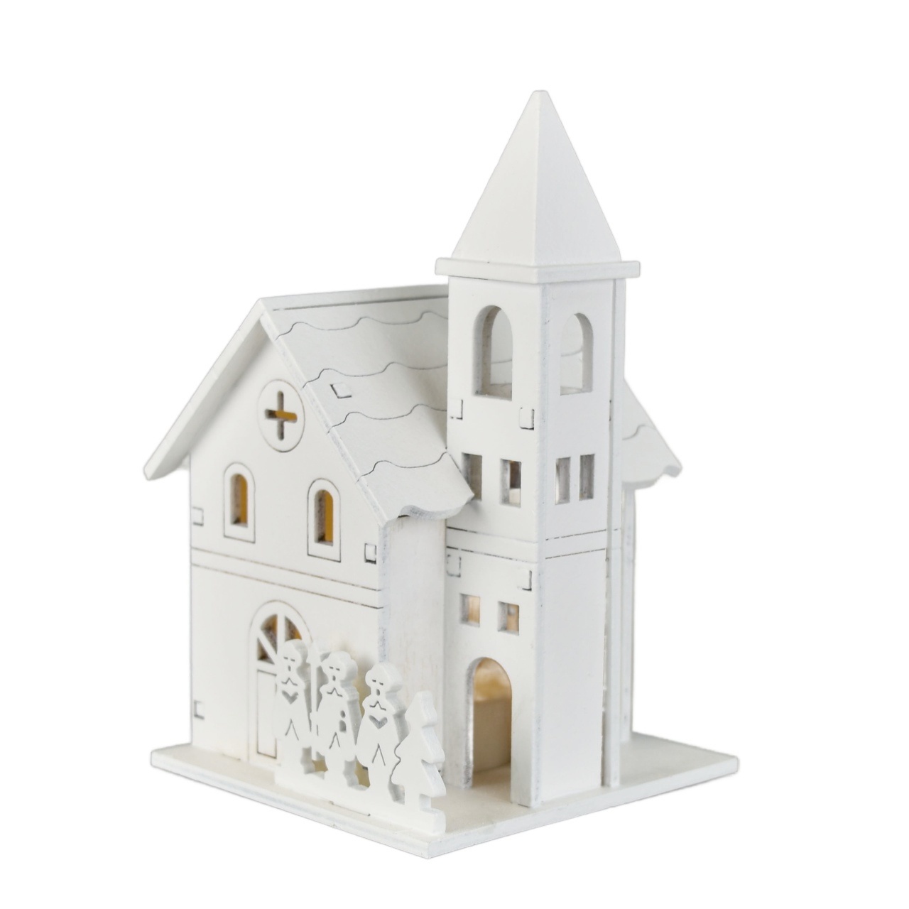 Dřevěný kostelík bílý s LED 13x8 cm