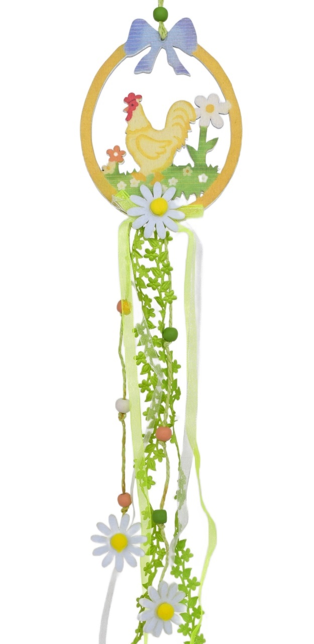 Dřevěné vajíčko s kohoutkem na zavěšení 50x10 cm