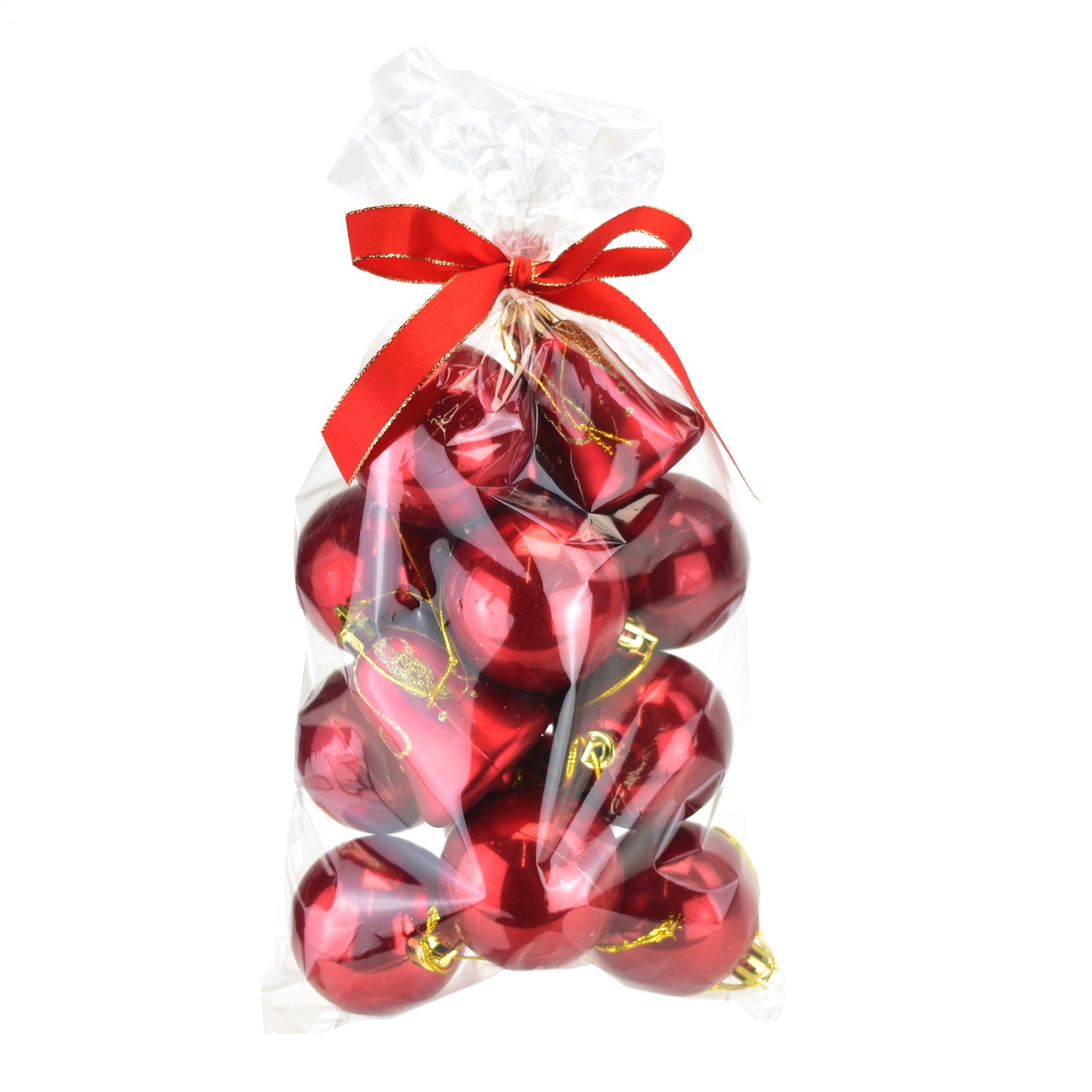 Vánoční koule v sáčku, 5 cm, červená perleť, 14 ks