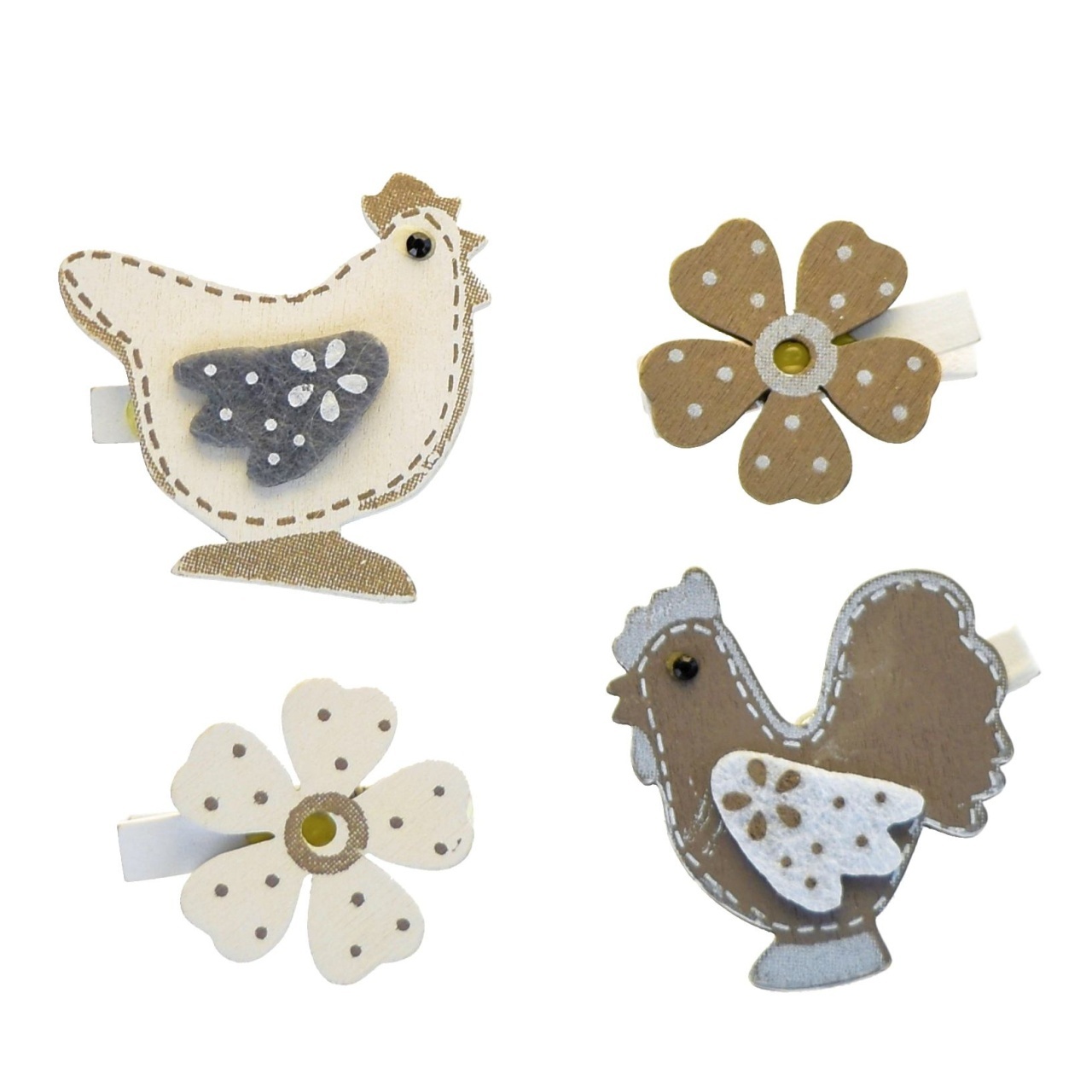 Obohaťte svoji velikonoční výzdobu s těmito jedinečnými kolíčky, které zahrnují 2 slepičky a 2 květiny. Tyto dekorativní kolíčky jsou vyrobeny z kvalitního dřeva a nabízejí skvělou kombinaci estetiky a funkčnosti.4 ks v baleníVelikost: 2 kolíčky o rozměrech 5x5 cm a 2 kolíčky o rozměrech 4x3,5...