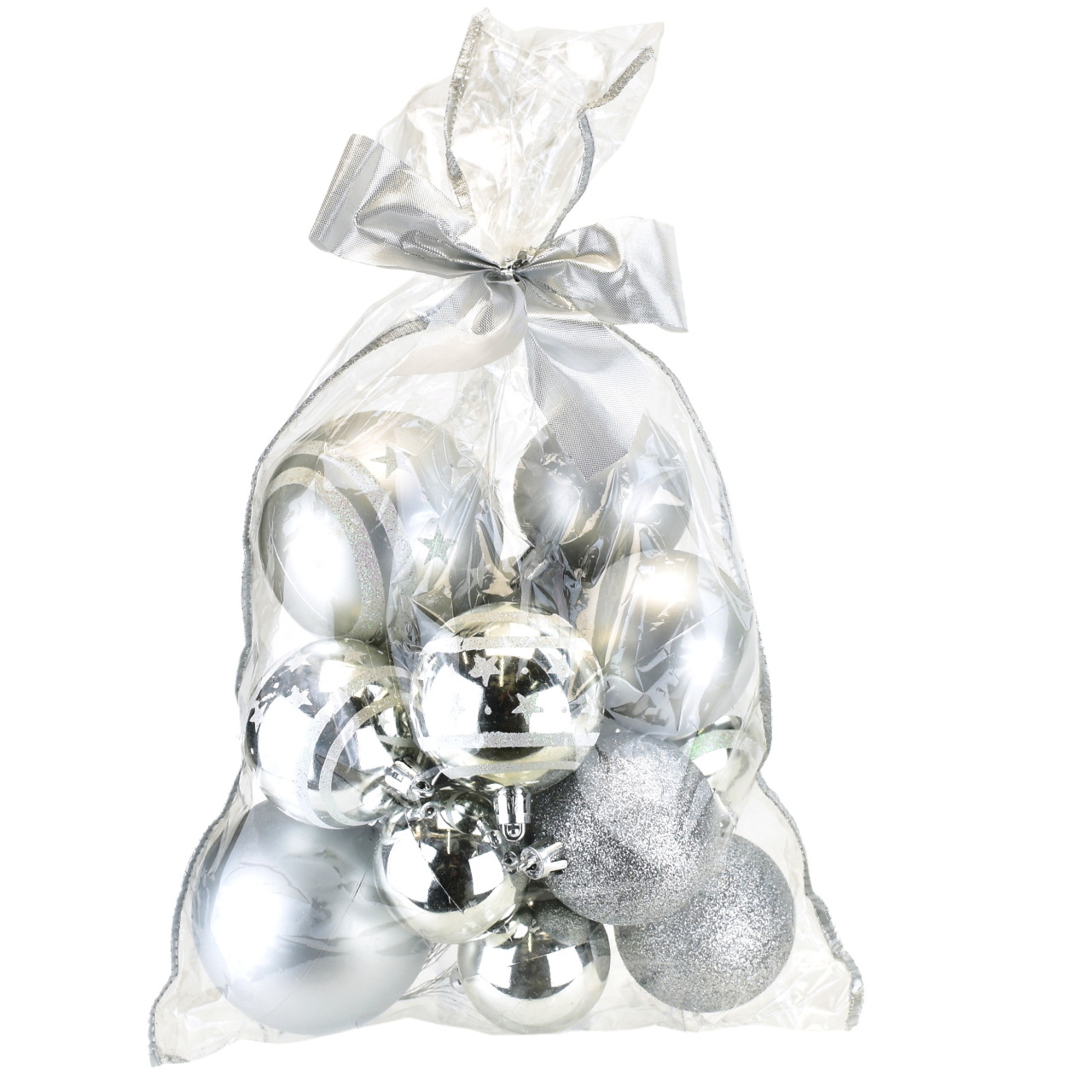 Vánoční koule v sáčku, assort, stříbrné, 14 ks