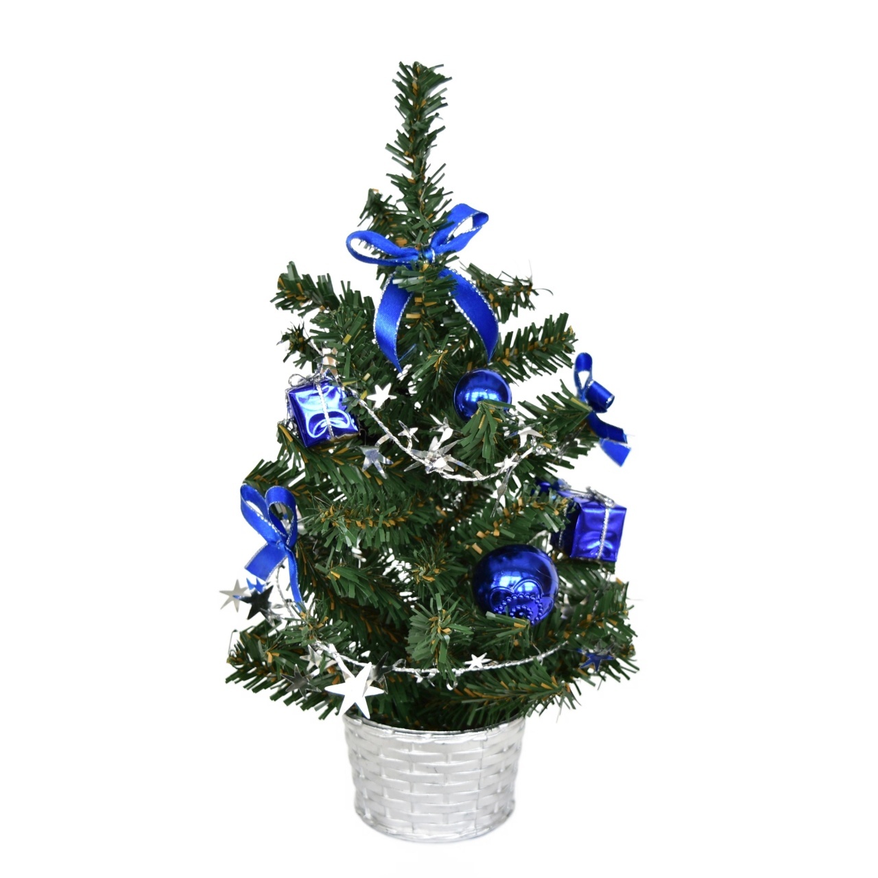 Zkuste náš vánoční stromeček zdobený v modré barvě! Malý, ale okouzlující stromeček o výšce 25 cm bude dokonalým doplňkem vašeho vánočního interiéru. Modré kouličky, mašle a dárečky dodávají tomuto stromečku jedinečný lesk a eleganci. Stříbrný řetízek...