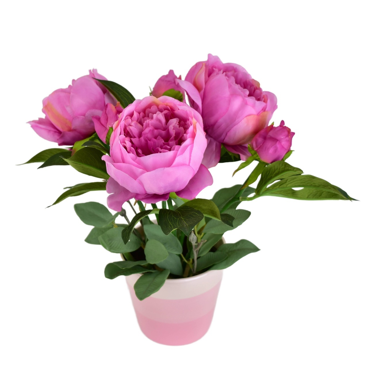 Pivoňky fialové 6 květů v keramickém květináči 36x30 cm