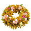 Jarní věnec z dřevěných kalíšků a květy růžiček žlutý Ø30 cm