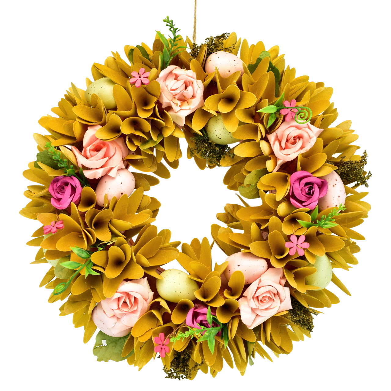 Jarní věnec zdobený růžičkami o průměru 30 cm je dokonalým doplňkem pro vaše jarní aranžmá. Tento věnec je vyroben z kvalitních dřevěných kalíšků a zdoben vajíčky, květy růžiček a větvičkami. Vše je precizně připevněno na pevném a vysoce kvalitním korpusu. Věnec je vyroben z kombinace...