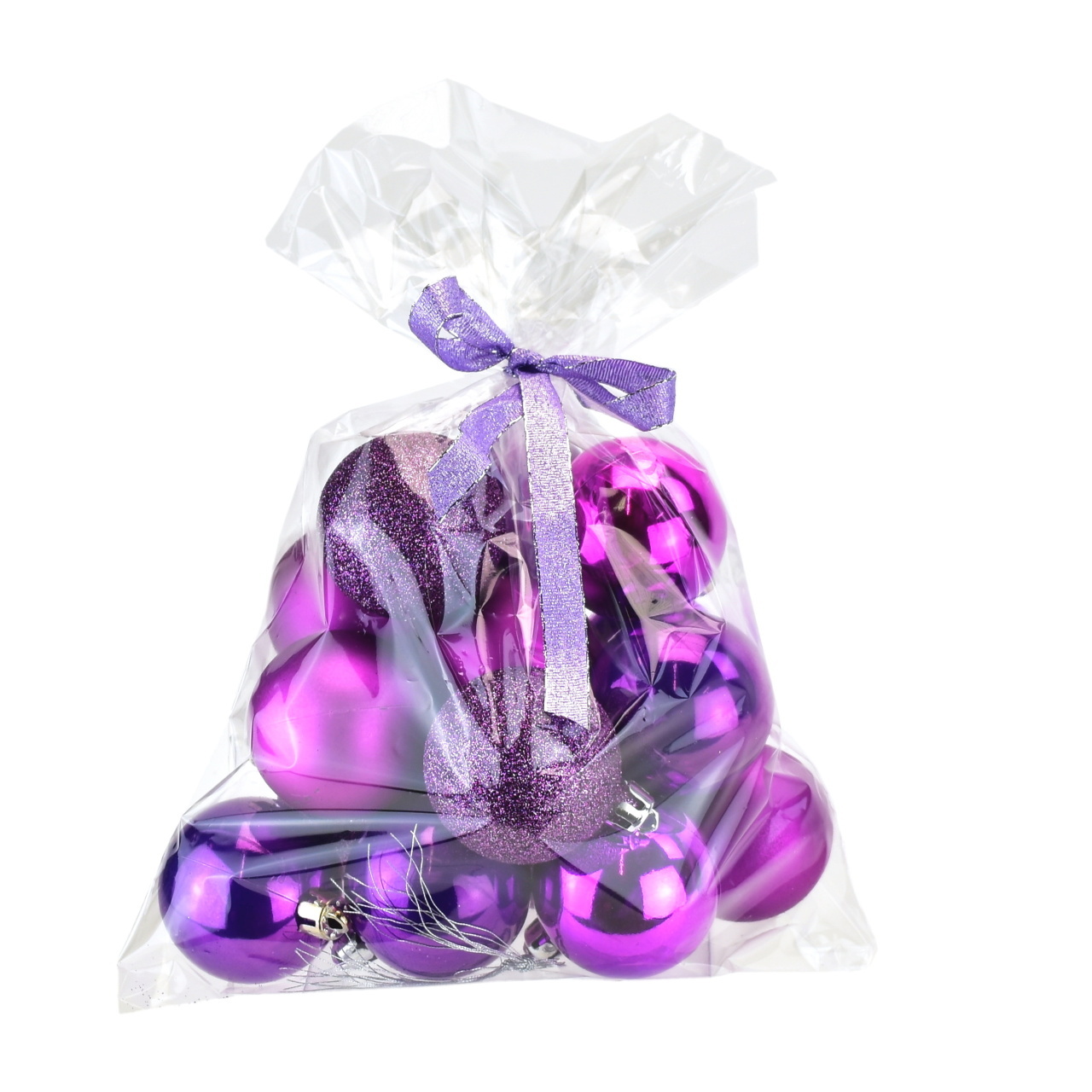 Vánoční koule v sáčku, 5 cm, fialové, 16 ks