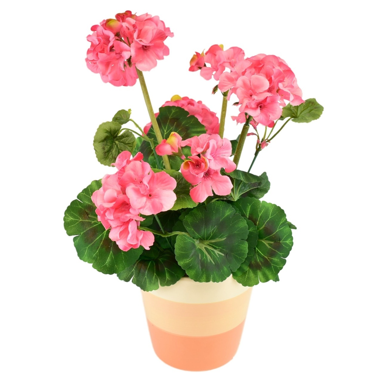 Sztuczny kwiat pelargonii (muškatu) to najlepszy wybór dla tych, którzy szukają eleganckiego dodatku do swojego wnętrza. Ten stylowy bukiet z jasnoróżowymi kwiatami w pomarańczowej ceramicznej doniczce wprowadza do Twojego domu nutę elegancji. Dzięki wysokiej jakości materiałom, takim jak plastik, metal i tkanina, zapewniona jest długa trwałość tego sztucznego kwiatu. Połączenie z pomarańczową ceramiczną doniczką tworzy luksusowy i efektowny design. Przy wymiarach 40 cm (wysokość) i 25 cm (szerokość) zapewnia stabilne ustawienie i wygodne użytkowanie. Pozwól się oczarować tym wyjątkowym kwiatem i dodaj do swojego domu odrobinę elegancji i piękna.