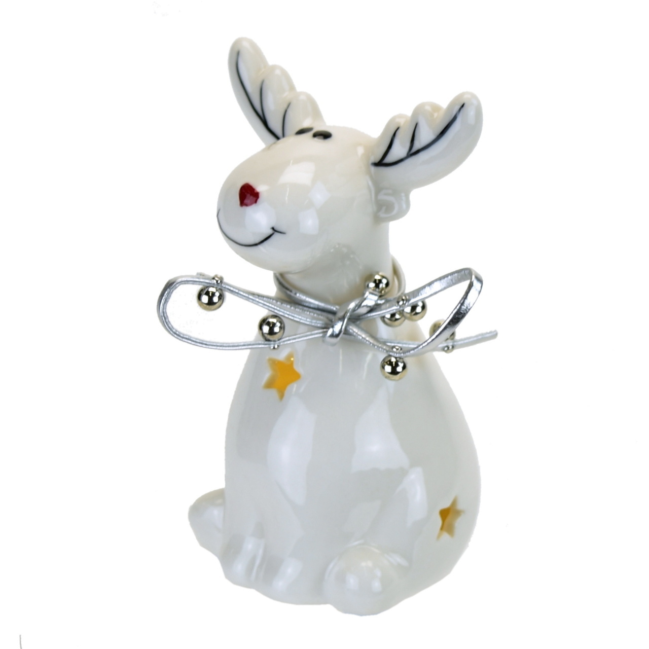 Bavte se o Vánocích s tímto úžasným keramickým sobem! Náš bílý sob s hvězdičkami a stříbrnou mašličkou s korálky je ideálním doplňkem pro váš vánoční interiér. Tato kvalitní keramická soška s lesklým povrchem je výškou 11,5 cm a zaručeně přitáhne veškerou pozornost svým bateriovým LED...