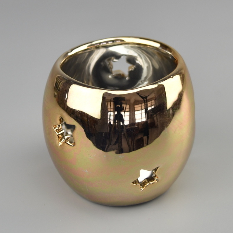 Svícen keramický pozlacený na čajovou svíčku s výřezy hvězdiček. przeczytaj całość