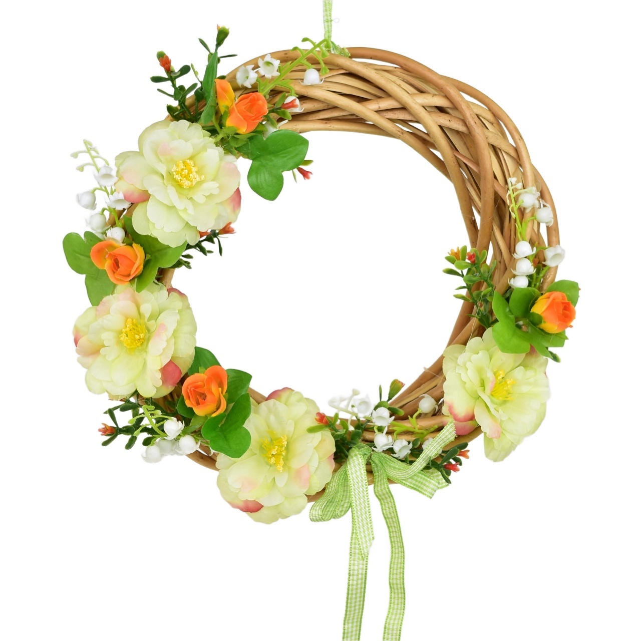 Proutěný věneček se žlutou kamélií Ø25 cm