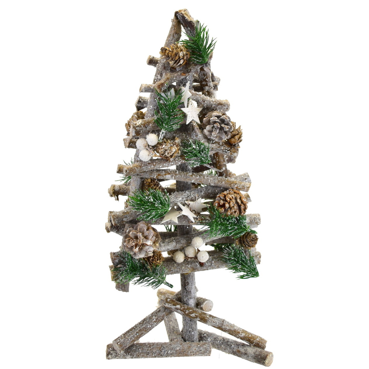 Doplňte svůj vánoční dekor tímto nádherným stromkem s bílými hvězdičkami! Prostřednictvím zasněžených šišek, zelených větviček a barevných kuliček, tento dřevěný stromek dodá vášmu domovu úžasnou vánoční atmosféru. Nechte se unést vánočními pocity a připravte se na ty nezapomenutelné okamžiky se svými blízkými.