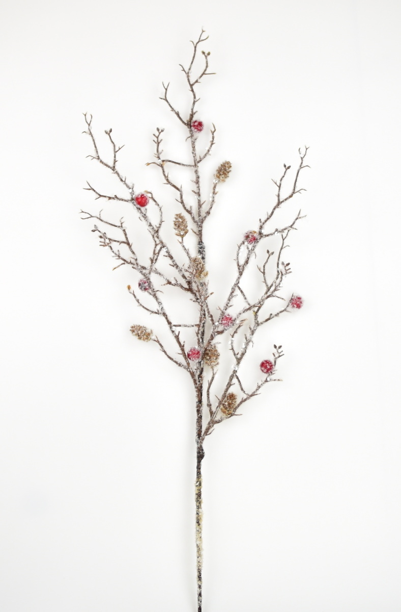 Vánoční ojíněná větvička s bobulemi a šištičkami. przeczytaj całość