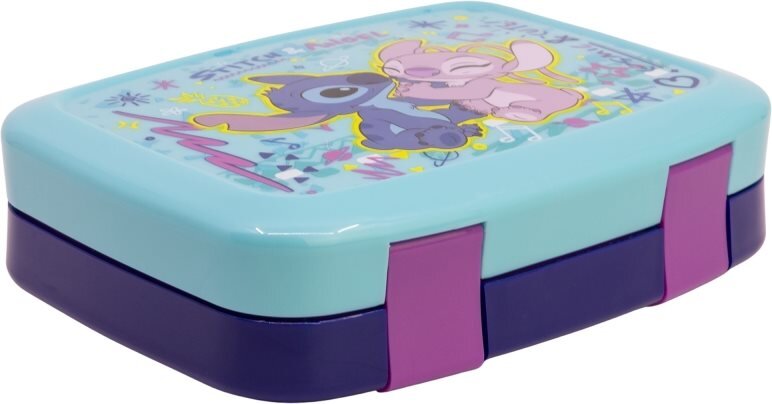 praktyczne pudełko z 4 przegródkami podzielonymi na 2 poziomy, 3 przegródki na górze i 1 przegródka (tacka) na dole, wykonane z wytrzymałego materiału - wytrzyma upadki i uderzenia podczas codziennego użytkowania, bez BPA.
