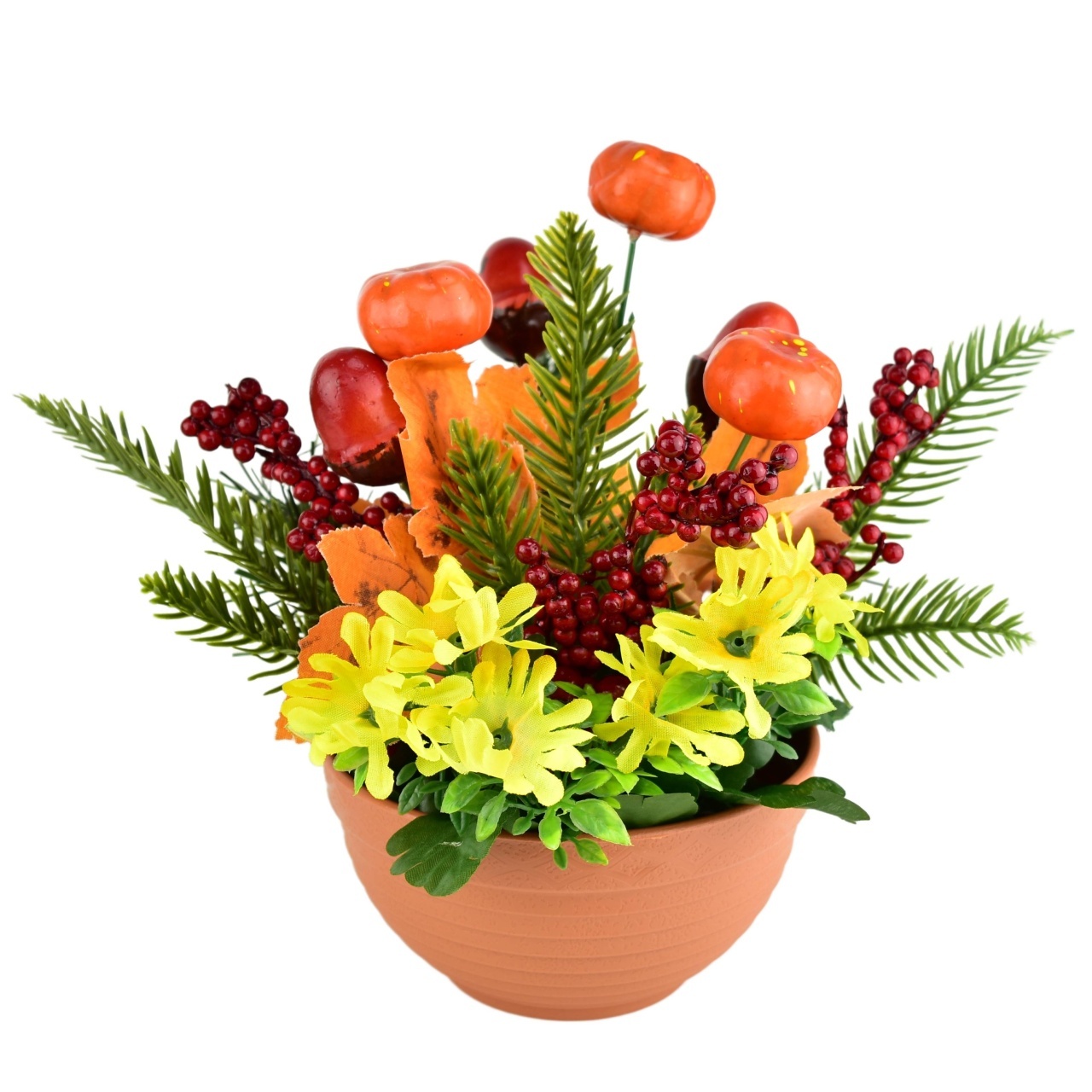 Jest idealna jako dekoracja pogrzebowa lub jako jesienna ozdoba do Twojego domu. Wymiary dekoracji to 25 cm wysokości i 25 cm szerokości, natomiast sama miska ma średnicę 15 cm i wysokość 7,5 cm. Całkowita waga produktu wynosi 800 g, co zapewnia odpowiednią stabilność. Wybierz naszą jesienną miskę i dodaj do swojego wnętrza niepowtarzalny jesienny urok.
