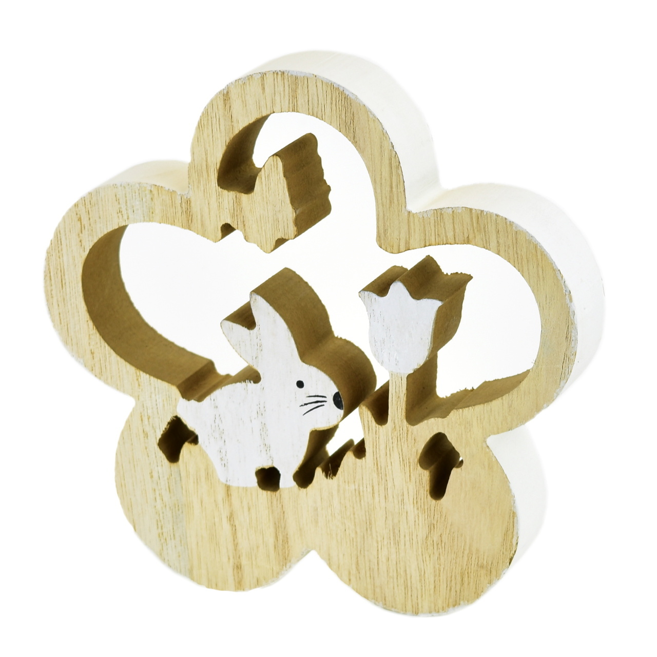 Kytička se zajíčkem 14 cmOriginální a roztomilá dřevěná dekorace pro dokonalou atmosféru. Tato kytka se zajíčkem a květinou přinese do vašeho domova kouzlo přírody. Ideální pro vytvoření příjemného prostředí nejen na Velikonoce.Hlavní vlastnosti:Materiál: PřekližkaVelikost: 14 x 14 cm (v. x...
