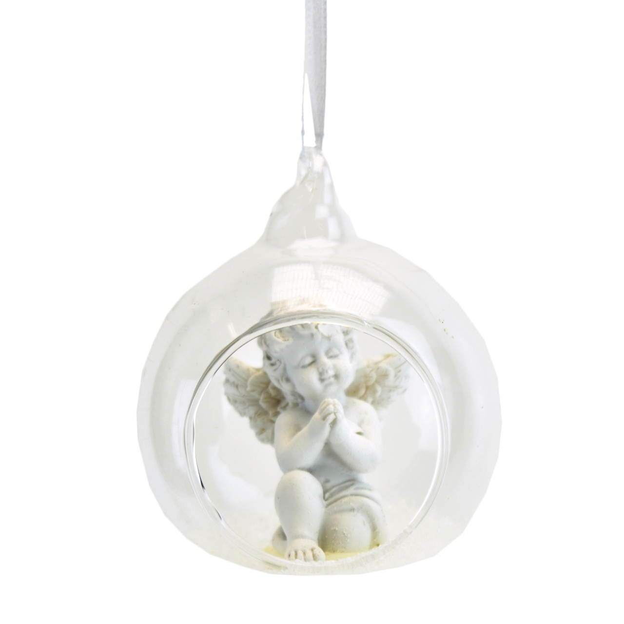 Koule skleněná s andílkem Ø7 cmKouzelná závěsná skleněná koule s nádhernou dekorací andílka přivede do vašeho domova vánoční magii. Tato elegantní koule je nejen perfektním způsobem, jak zdobit vánoční strom, ale také se může stát krásným doplňkem na stůl nebo polici. Je vyrobena ze skla a...