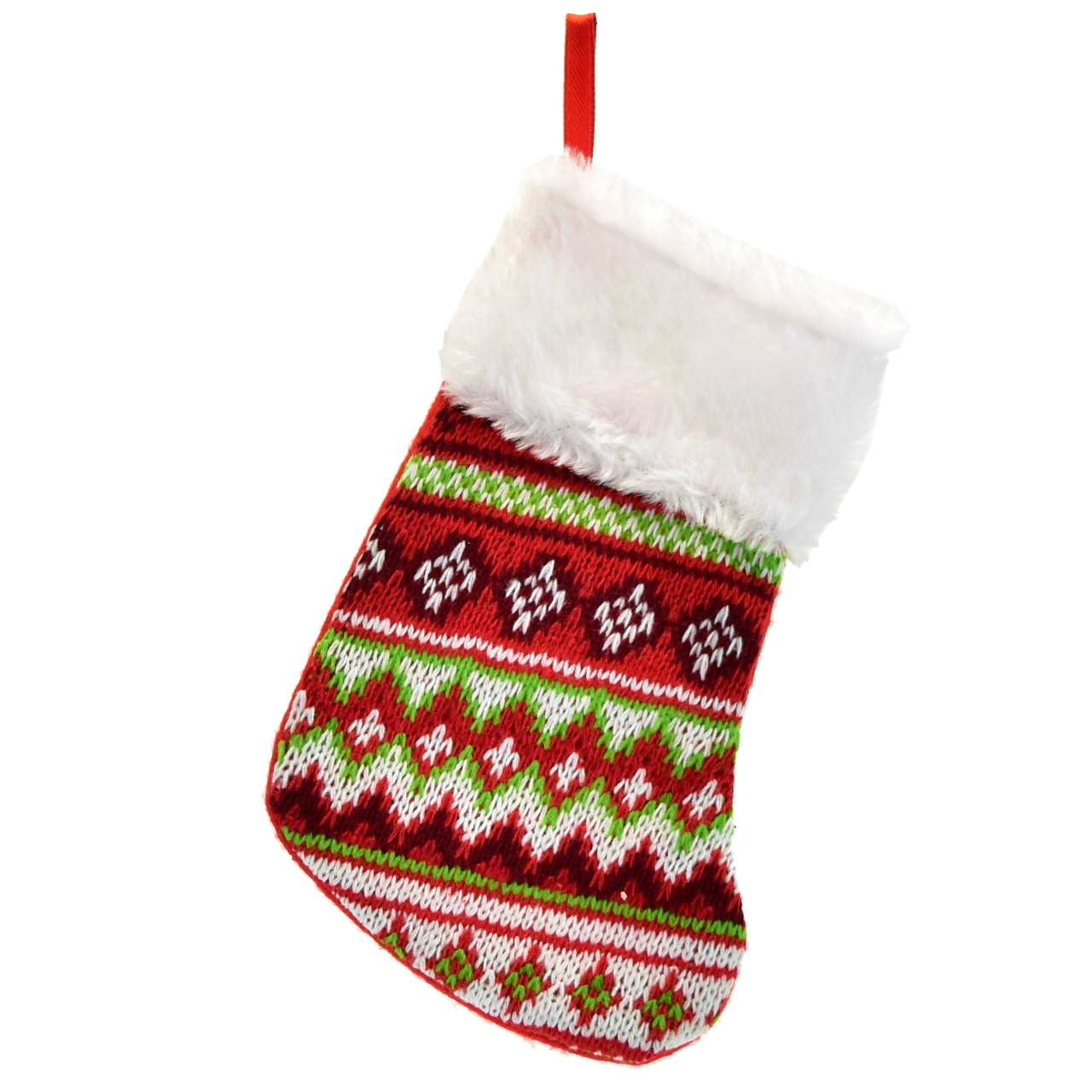 Vánoční botička červená s kožíškem a s pleteným vzorem z přední strany. Vhodná na sladkosti na koledu.Materiál: texlil/flisVelikost: Výška 18 cm / Šířka 10 cm przeczytaj całość