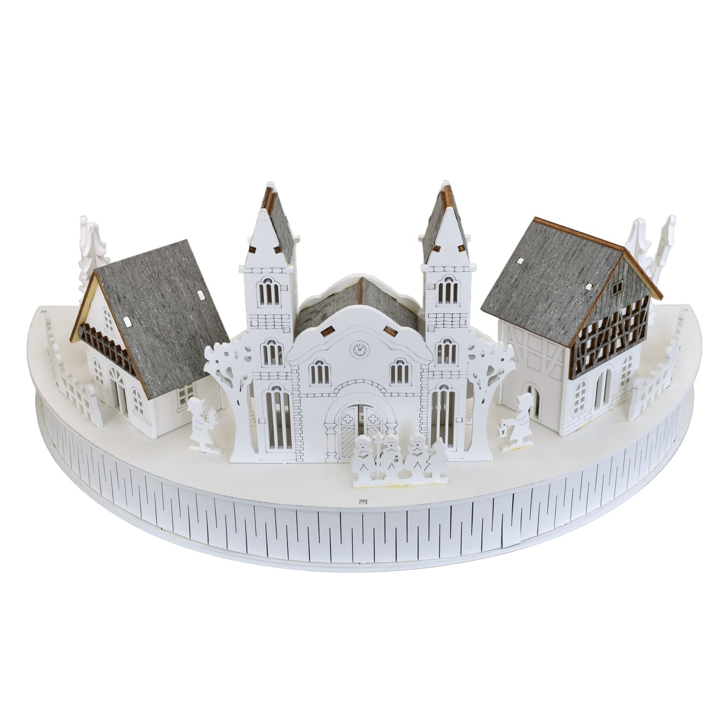 Dřevěná vesnička s kostelem LED 17x40 cm