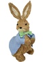 Slámový zajíc v modrém kabátku 39 cm
