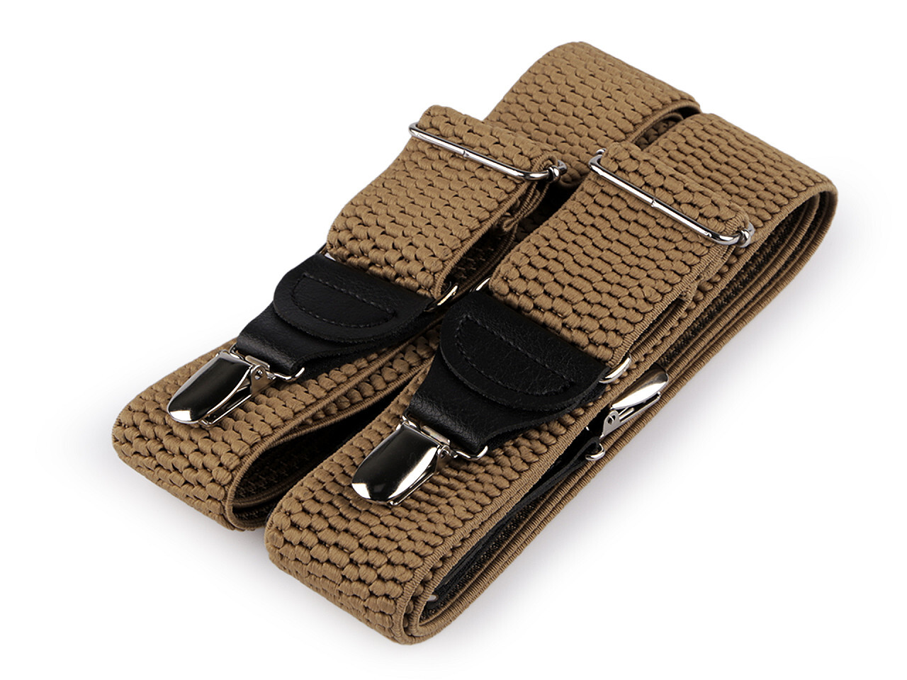 Męskie szelki w paski są wysokiej jakości, czeskiej produkcji. Ich elastyczny materiał zapewnia wygodne noszenie. Klipsy są podkreślone starannie wykonanymi detalami z eko skóry, które nadają im stylowy wygląd. Szelki mocuje się do spodni za pomocą 4 klipsów - dwóch z przodu i dwóch z tyłu. Długość można regulować. Nadają się zarówno do codziennego noszenia, jak i do spodni narciarskich oraz innych spodni sportowych.