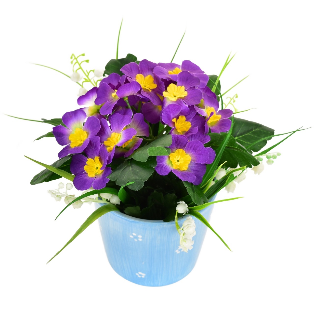 Obohaťte svůj domov o nádech elegance s naší umělou květinou Primule s okouzlujícími fialovými květy. Umístěná ve stylovém světle modrém keramickém květináči dodá vašemu interiéru jemnost a půvab. Tento jedinečný vývazek, skládající se z 12 květů krokusů, vyniká nejen svou krása, ale také...