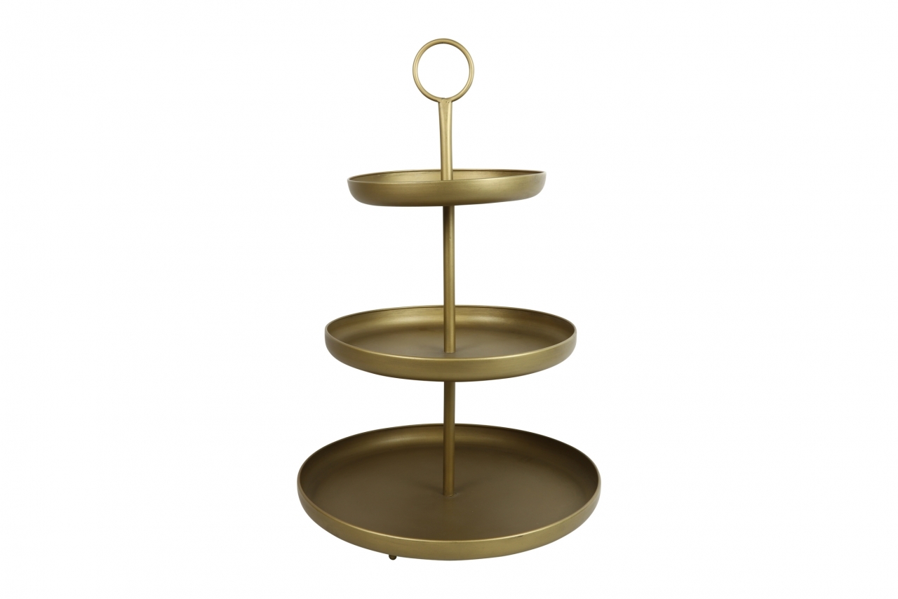Třípatrový etažér Danton L zlatývýška: 76 cmšířka: 51 cmmateriál: niklbarva: zlatá Vyroben z vysoce kvalitního niklu, který zaručuje jeho odolnost a dlouhou životnost. Nikl dodává etažéru elegantní a moderní vzhled, který se hodí do různých interiérových stylů.Díky třem úrovním poskytuje etažér...