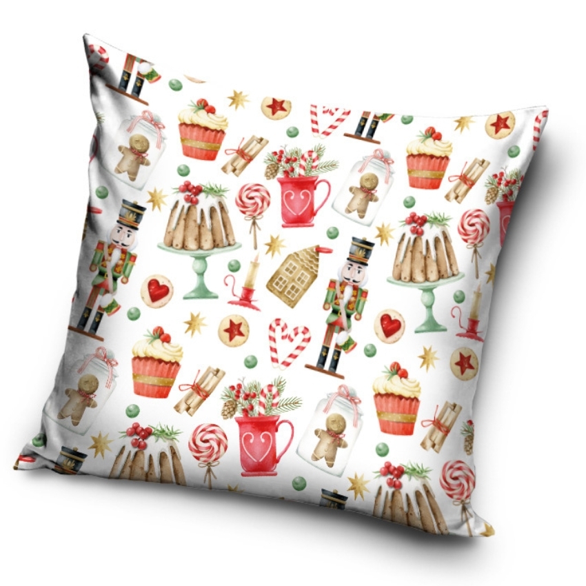 SlADKÝ povláček s louskáčkemDekorační povlak na polštářek Louskáček a Sladký Svět je vyrobený ze 100% polyesteruVánoční povláček má rozměry 40x40 cm a je opatřen zipovým zapínánímNa bílém povláčku jsou obrázky vánočního cukroví, dortíků a LouskáčkaObrázky vypadají, jakoby byly namalované a celý...