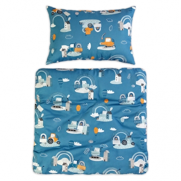 Povlečení do postýlky, 2D sada - Malý stavitel, modrá; 120x90