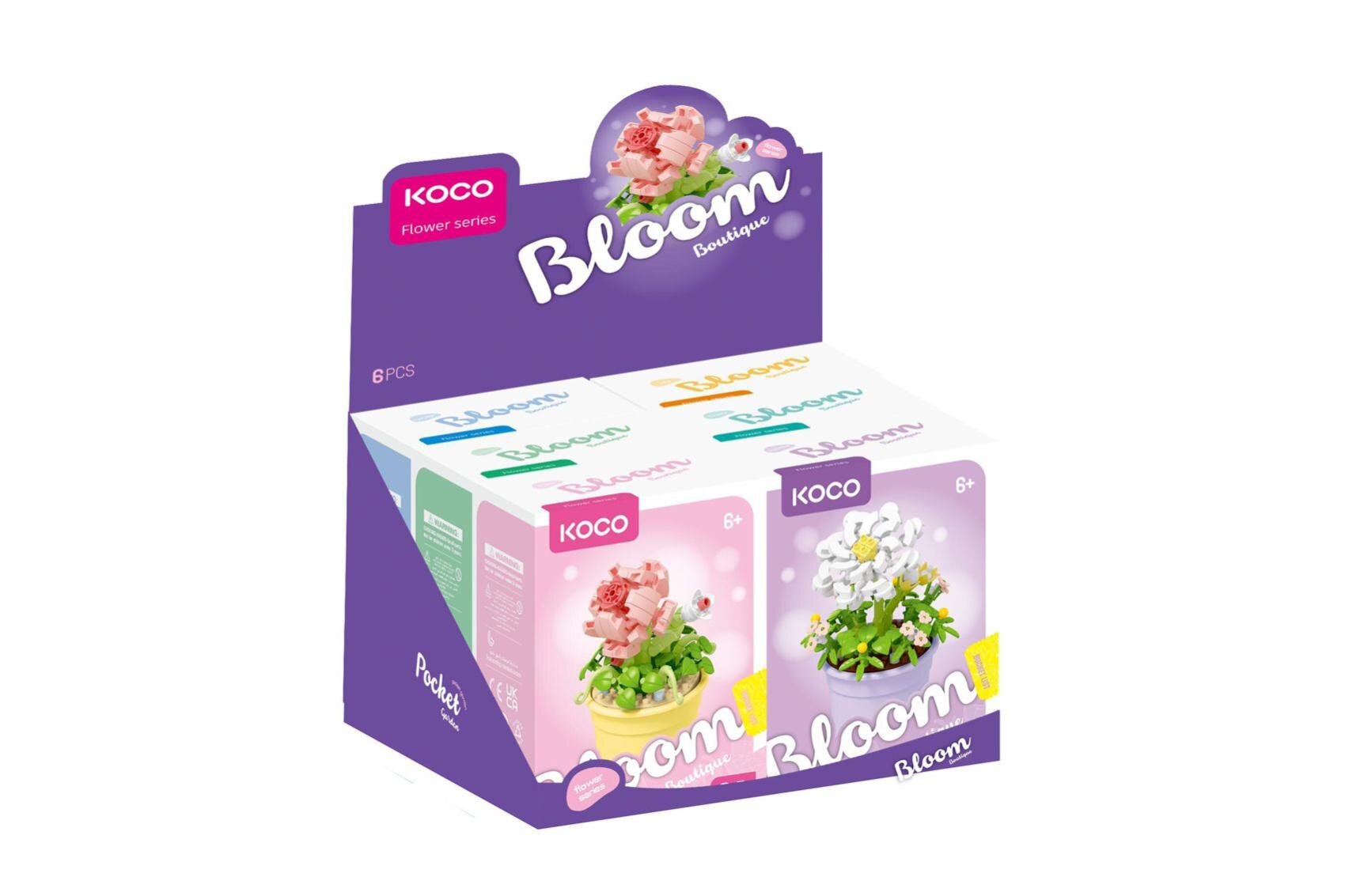 Stavebnice mini KOCO Květina v květináči plast 6 druhů v krabičce 10x14x6cm 6ks v boxu