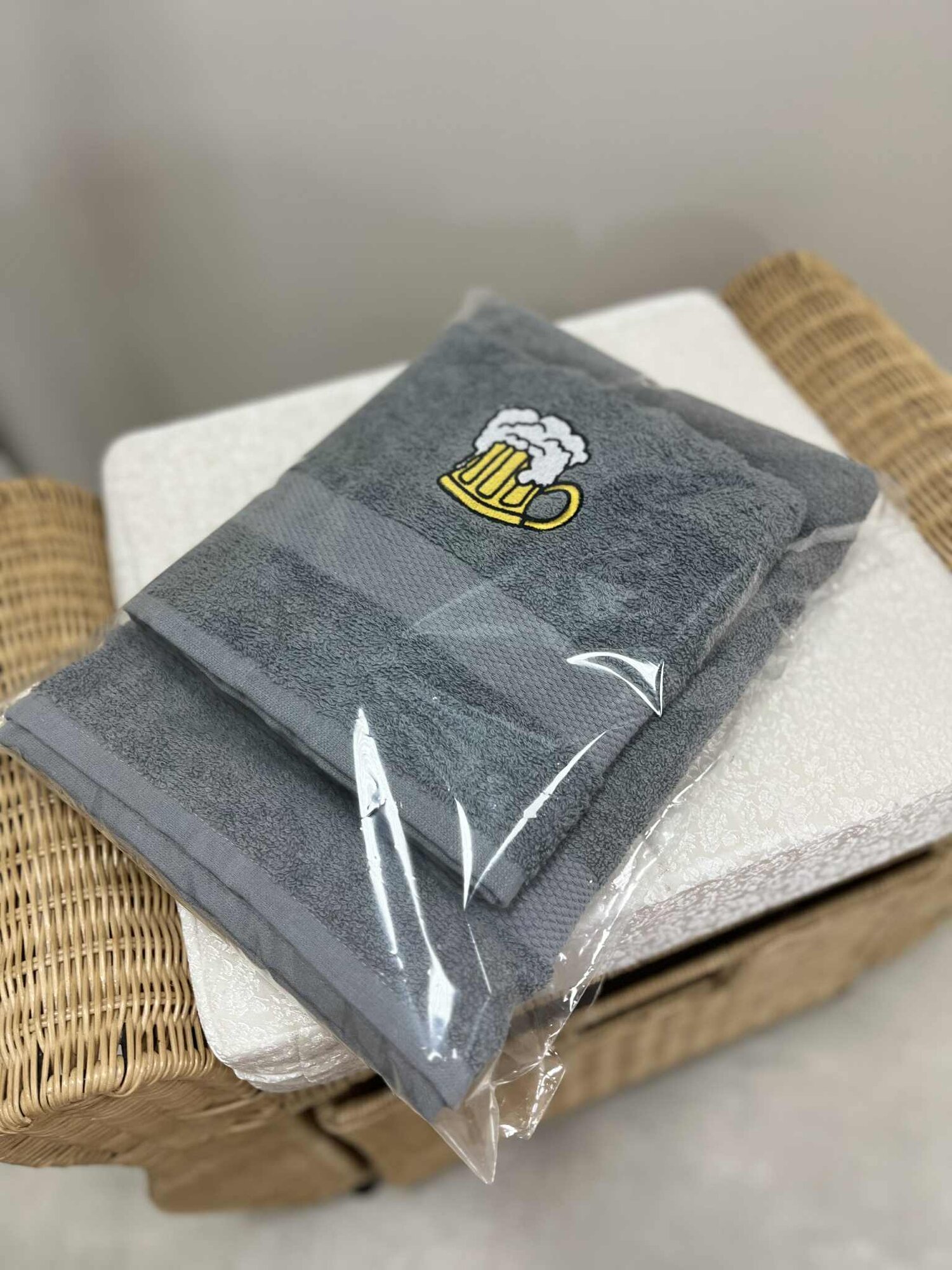 B.E.S. - Petrovice, s.r.o. Dárkový set ručník a osuška 50x90+70x140 froté s výšivkou piva - antracitová
