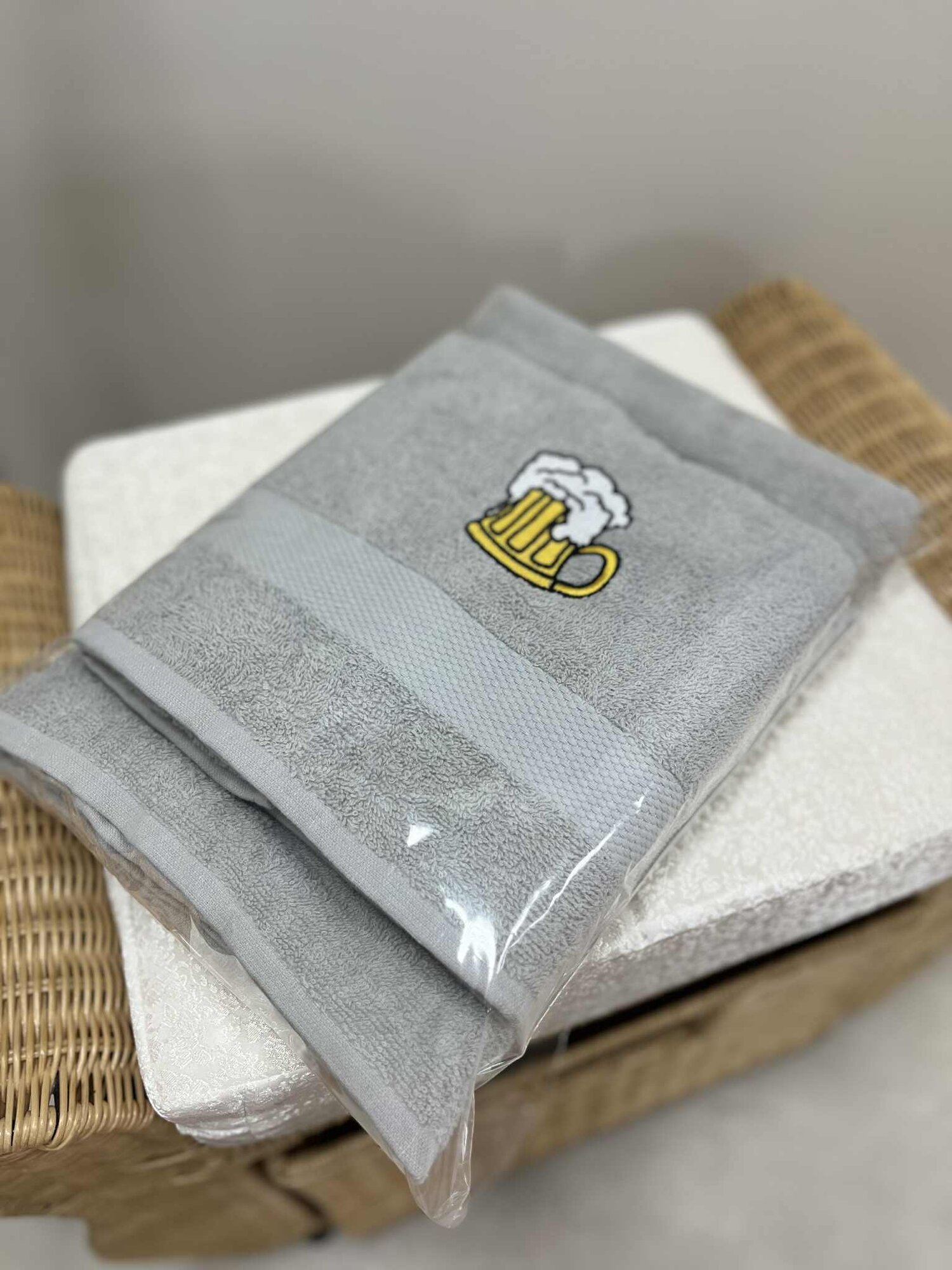 B.E.S. - Petrovice, s.r.o. Dárkový set ručník a osuška 50x90+70x140 froté s výšivkou piva - šedá