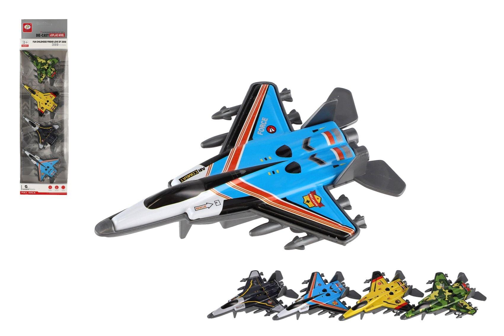 Letadlo stíhačka 4ks kov/plast 10cm na zpětné natažení mix barev v krabičce 10x36,5x4cm