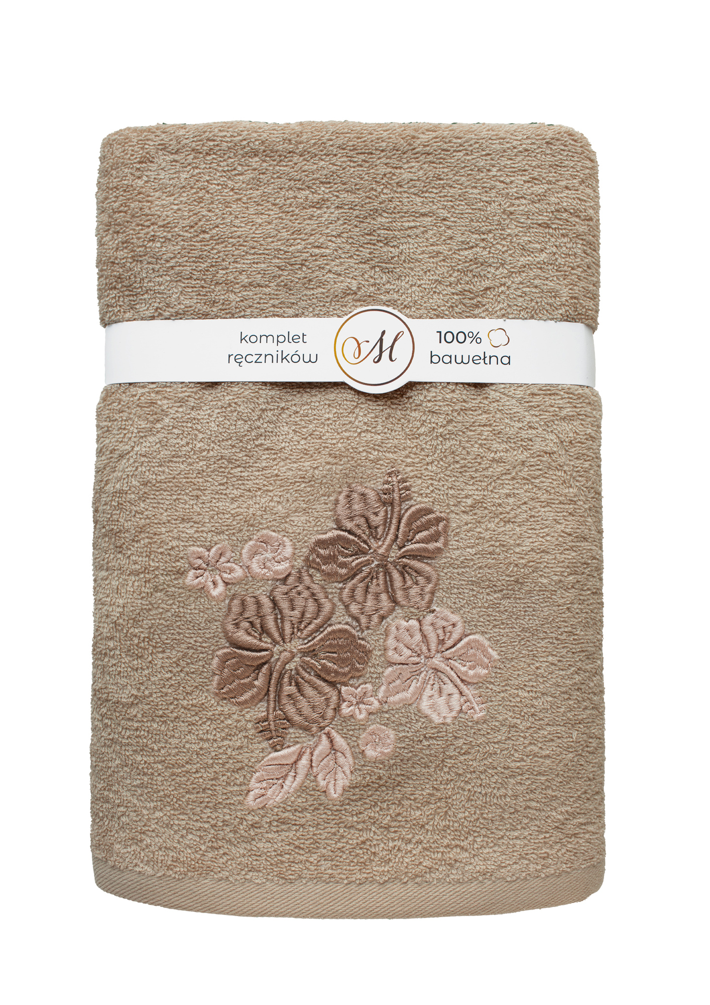 RĘCZNIK KPL.MARIBELLA 3 SZT./30X50/50X100/70X140/ FROTTE HAFT 004 HIBISKUS JASNY BEŻ
